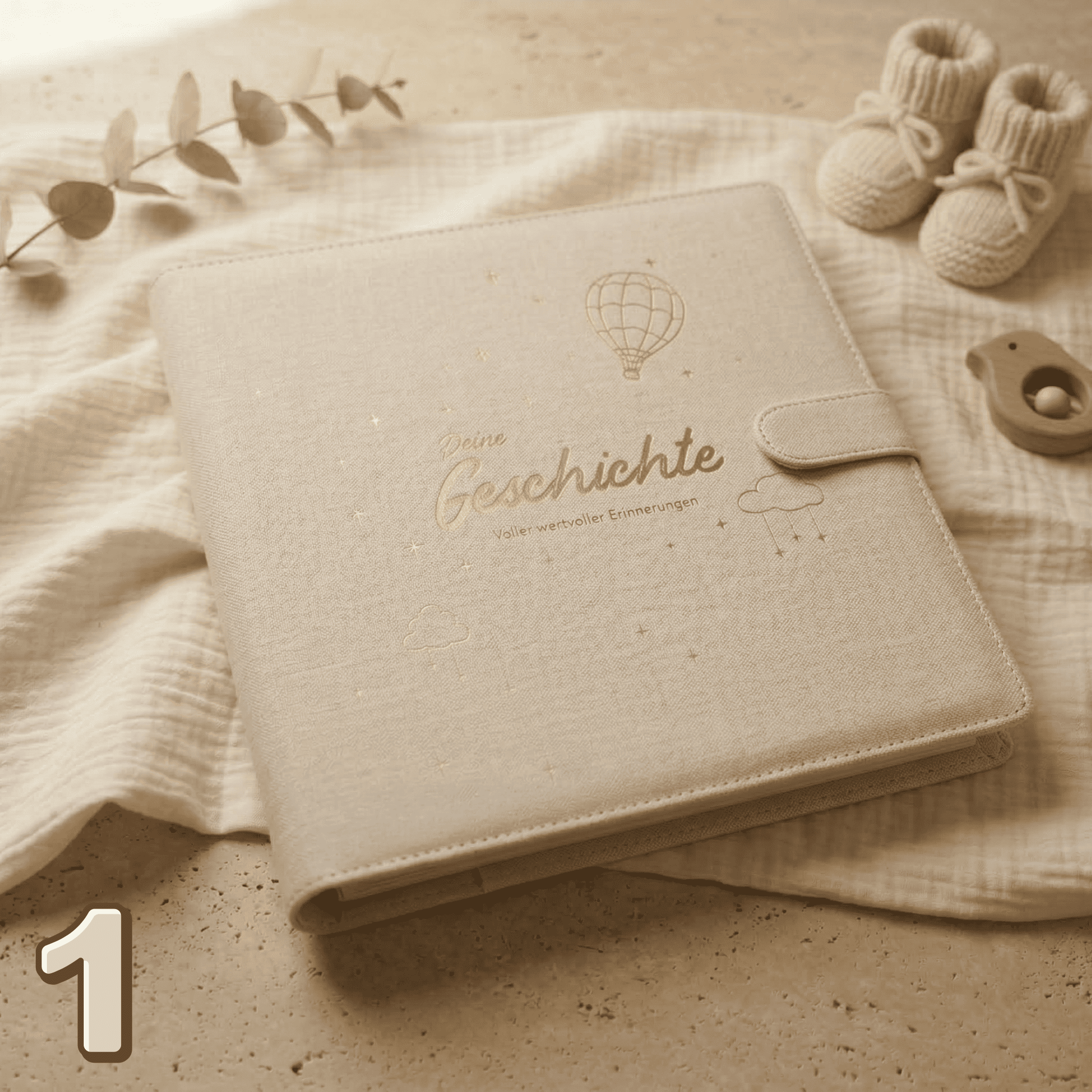 Ein hochwertiges, langlebiges und robustes Produkt, das umweltfreundlich, vegan und genderneutral gestaltet ist – ideal für alle Familien. Egal, wie viel Zeit du hast, am Ende hältst du ein vollständiges Erinnerungsalbum in den Händen, das perfekt zu euch passt.
